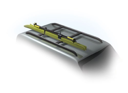 Raxstars is a portable rooftop ski carrier that attaches to any auto cross bar (factory, Yakima, Thule, etc.). Rack a pair of skis/poles in under a minute with 5-10x more clamping force than traditional ski racks! The ultra compact design allows for quick removal and is easily stored in the glove box. No tools or assembly are required and Raxstars comes with a built in locking mechanism that accepts any standard padlock. Unique aerodynamic, “bombproof” design eliminates annoying wind noise and drag. Raxstars is also great to travel with or to use in combination with a large bin rooftop carrier. Just five easy pieces and one low price! Raxstars for Snowboards is also available. Customer support at 877-699-6835 or corporate@raxstars.com