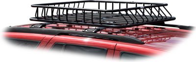 The Black Widow roof basket cargo carrier mounts to existing roof cross bars like those found on most Suv's and mini-vans today. This roof rack comes with a heavy duty black epoxy powder coated finish and measures 43.5 Inch x39 inch x6 inch tall. Extension included adds 20 inches additional to Basket.